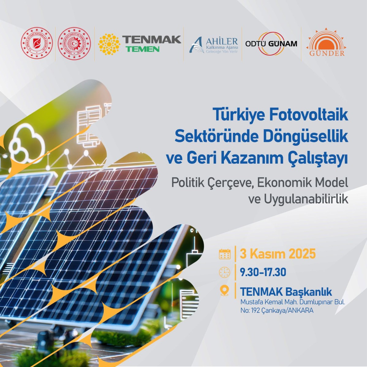 TENMAK ev sahipliğinde Ajansımız ile ODTÜ-GÜNAM ve GÜNDER iş birliğinde gerçekleştireceğimiz "Türkiye Foyovoltaik Sektöründe Döngüsellik ve Geri Kazanım Çalıştayı"na katılımlarınızı bekleriz.