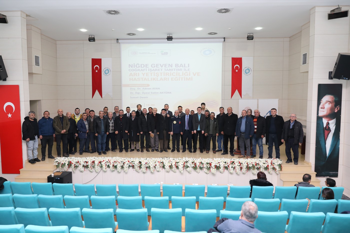 Niğde Geven Balı Coğrafi İşaret Tanıtımı ile Arı Yetiştiriciliği ve Hastalıkları Eğitimi Programı; Niğde Valisi Sayın Nedim Akmeşe, Niğde Ömer Halisdemir Üniversitesi Rektörü Prof. Dr. Sayın Hasan Uslu, Ahiler Kalkınma Ajansı Genel Sekreteri Sayın Bekir Varol, ilgili kurum temsilcileri ve üreticilerin katılımıyla gerçekleştirildi.